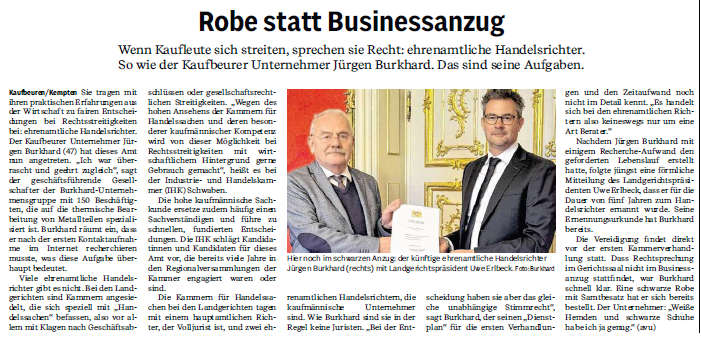 500 Besucher beim Familientag Dem Wunsch vieler Mitarbeiter, dass Ihre Angehörigen einmal die Arbeitsplätze anschauen dürfen, wurde das Inhaberehepaar Jürgen und Tanja Burkhard am Familientag gerecht. Sie begrüßten in den Produktionshallen an der Julius-Probst-Straße in Kaufbeuren über 500 Besucher. vollen Artikel lesen Veröffentlicht in der Bayerisch-Schwäbischen Wirtschaft, Ausgabe 11/2018